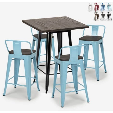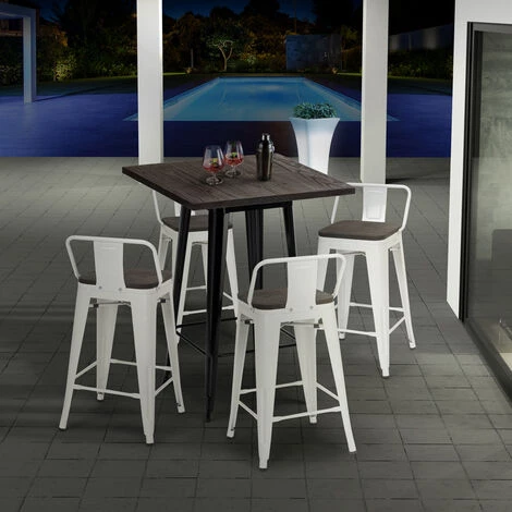 - Ensemble composé d’1 table haute carrée et de 4 tabourets