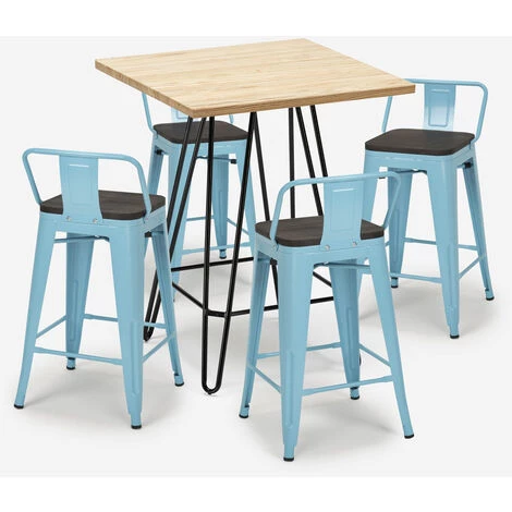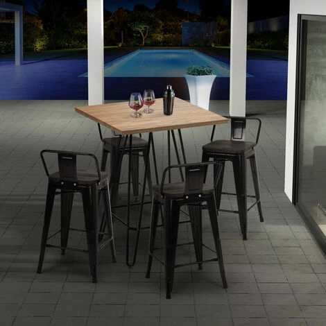 - Ensemble composé d’1 table haute carrée et de 4 tabourets