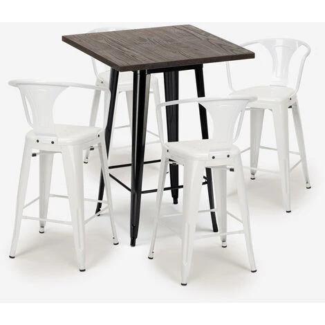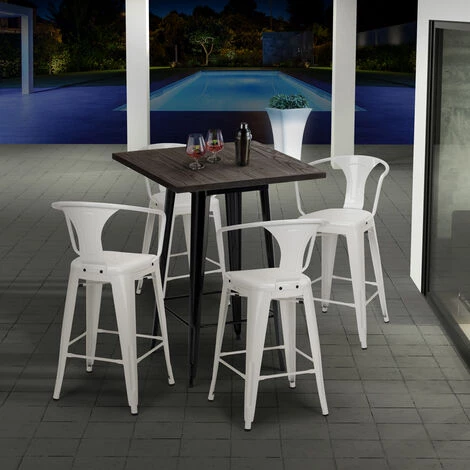 - Ensemble composé d’1 table haute carrée et de 4 tabourets
