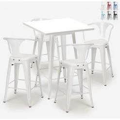 - Ensemble composé d’1 table haute carrée et de 4 tabourets