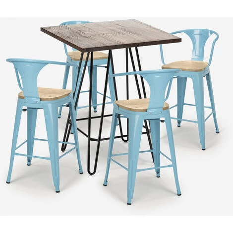 - Ensemble composé d’1 table haute carrée et de 4 tabourets