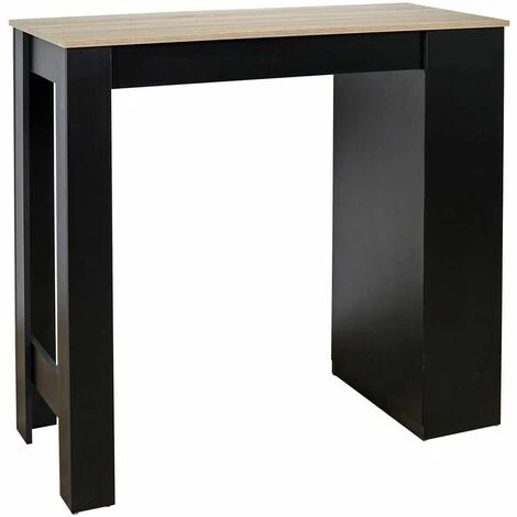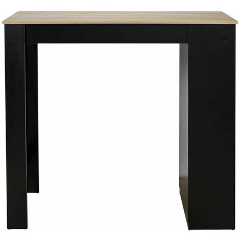 Piétement en panneau de particules, coloris noir. Plateau en MDF, finition revêtement aspect bois.
