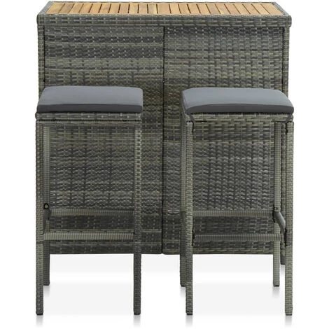 Discutez avec vos amis ou prenez un verre tout en vous relaxant sur cet élégant ensemble de bar ! Cet ensemble de bistro dispose d’un cadre en acier solide, ce qui le rend stable. La résine tressée est durable et résistante aux intempéries, ce qui la rend adaptée à une utilisation quotidienne. Le dessus de table en bois d’acacia massif peut être utilisé pour mettre vos boissons ou collations. Cet ensemble de pub est facile à déplacer, grâce à sa construction légère. Le coussin d’assise et le repose-pied intégré ajoutent également un confort d’assise supplémentaire au tabouret. La housse de coussin en polyester facile à nettoyer avec fermeture éclair dissimulée peut être enlevée et lavée. La table de bar dispose également de deux étagères pour un espace de rangement suffisant pour garder vos articles essentiels organisés et à portée de main.