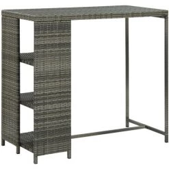 La table de bar avec étagère de rangement est un choix parfait pour toute maison, jardin, bar, pub, restaurant, etc. Cette table de bistro est faite de résine tressée et cadre en acier, ce qui la rend durable et stable. Le support de rangement latéral comprend 3 étagères et offre un espace de rangement supplémentaire pour vos articles à portée de main. Grâce à sa construction légère, la table de salle à manger est également facile à déplacer.