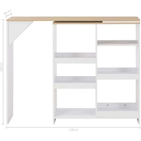 Notre table de bar est le choix parfait pour les pièces où l’espace est un peu limité en raison de sa tablette amovible. Son design contemporain fait de cette table un supplément chic à votre cuisine ou à votre salle à manger. Fabriquée en panneau d’aggloméré robuste, elle est durable, stable et facile à nettoyer. Le cadre en forme de L et le triangle de renforcement de la table confèrent à la table une stabilité optimale. De plus, avec sa hauteur idéale et son design spécial, cette table haute complétera certainement la décoration de votre maison. Sentez-vous à l’aise et savourez un verre ou un repas en famille ou entre amis ! La table de bar est facile à assembler.