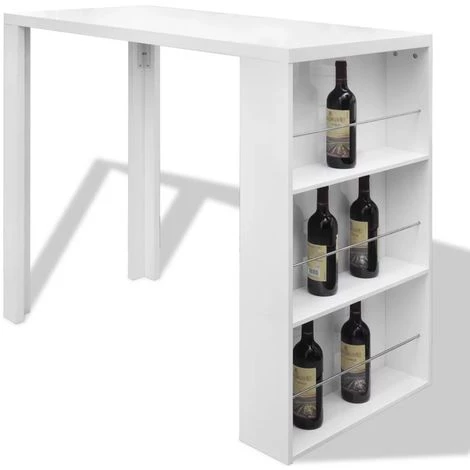 ASUPERMALL Table De Bar MDF Avec Casier A Bouteilles Blanc Haut Brillance