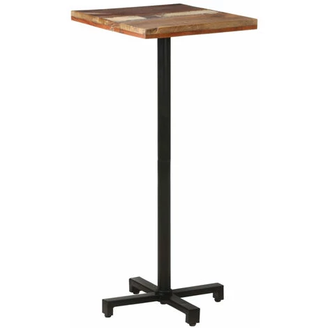 Cette table de bistro en bois est un excellent suppl’ement et est spécialement conçue pour votre intérieur ou votre jardin. Le dessus de table est fait de bois de récupération solide avec une finition de couleur mélangée, ce qui le rend stable et durable. Chaque meuble est unique et légèrement différent l’un de l’autre. Les meubles en bois de récupération ont les caractéristiques de différents bois comme le teck, le manguier et l’acacia. Les signes d’usure et la structure du grain visible donnent à chaque pièce sa propre histoire et un look unique. La base en fer enduit de poudre confère stabilité et robustesse. Cette table à dîner sert même de table pour placer votre boisson ou toute autre nécessité dont vous avez besoin à portée de main. Remarque importante : les couleurs et les grains varient d’une pièce à l’autre, rendant chaque meuble unique ; La livraison est également aléatoire.