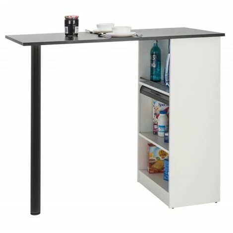 Meuble Rangement de Cuisine Coloris Blanc avec Table et Pied Métal