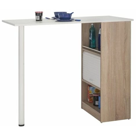 Meuble Rangement de Cuisine Coloris Chêne Naturel avec Table et Pied Métal
