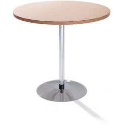 Diamètre: 800 mm, Hauteur: 720 mm, Épaisseur panneau: 25 mm, Prix échelonné à partir de: 1 pièces, Modèle de piétement: Pied central, Coloris piétement: Chrome, Matériau du piétement: Métal chromé, Coloris plateau: Finition hêtre, Prix par: Pièce, Matériau plateau de table: Panneau aggloméré en résine de mélaminé