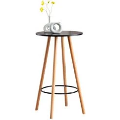 CLP Table Haute De Bar Mijas En Bois Avec Plateau Rond Et Repose-pieds En Métal Noir Rund