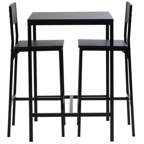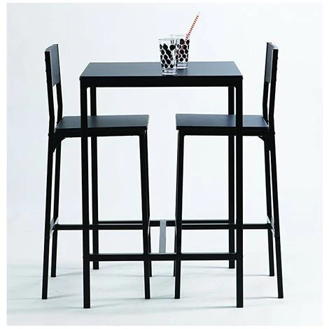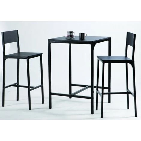 KOOL Ensemble table à manger + 2 tabourets – 2 personnes – Dessus de la table en MDF 15 mm – Pieds de la table en métal carré 25×25 mm – Assise et dossier en MDF 15 mm – Pieds de la chaise en métal carré 20×20 mm – Repose-pieds inclus – Convient également en table de cuisine – Table à manger 60x60x87 cm – Tabouret 39×44,5×95 cm.