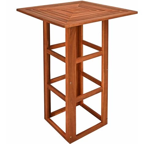 La table de bar en bois d »acacia possède unplateau detable carré de 75 x 75 cm. La structure se compose de 4 piedsstables.