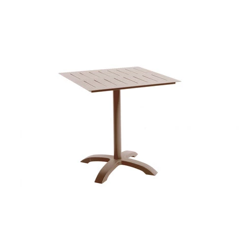 Cette table de bar carrée Inari coloris muscade est composé d’une structure en aluminium de 70x70x75cm. Le plateau est ajouré de dimensions :70x70xh75 cm