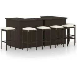 Cet ensemble de bar de jardin a un design élégant et sera le point de mire de votre jardin, patio ou terrasse. Fabriqué en résine tressée résistante aux intempéries et imperméable, cet ensemble de bar est facile à nettoyer, résistant à l’usure et adapté à une utilisation quotidienne. Le cadre en acier enduit de poudre rend la table et les tabourets très robustes et durables. Grace à la construction légère, tous les articles sont faciles à déplacer. Les coussins de siège amovibles et épais sont très confortables. Les housses des coussins avec fermetures éclair peuvent être facilement enlevées et lavées. Remarque : Nous vous recommandons de couvrir l’ensemble pendant la pluie, la neige et le gel.