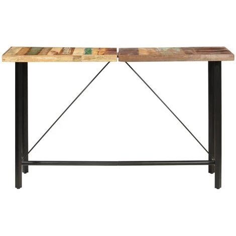 Cette table de bar attrayante a un aspect industriel et sera un supplément distinctif à votre salle à manger et cuisine. La table de bar est en bois de récupération solide et en acier enduit de poudre, qui est stable et robuste. Le bois de récupération est solide, stable, durable et beau. Des signes d’usure donnent à chaque pièce un look unique et la structure en acier ajoute à son style industriel spectaculaire. Chaque étape du processus de construction est réalisée avec le plus grand soin, que ce soit la recombinaison, le polissage, la peinture ou le laquage. Cette table de bar est facile à assembler. Remarque importante : La couleur et les grains de bois peuvent varier d’une pièce à l’autre, ce qui rend chaque pièce unique et légèrement différente de la suivante ; la livraison est aléatoire.