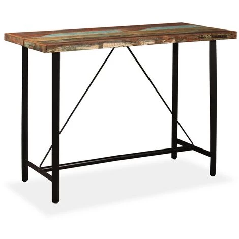 Cet ensemble de bar cool a un style industriel et sera un supplément distinctif à n’importe quelle maison, bar ou restaurant. La table de bar est faite de bois de récupération massif, ce qui signifie qu’elle a les caractéristiques de différents bois comme le teck, le bois de manguier, l’acacia, etc. Le bois de récupération est solide, stable, durable et beau. Des signes d’usure et d’artisanat donnent à chaque pièce un style unique. Il est entièrement fait à la main. Les pieds en acier robuste rendent la table de bar très robuste et durable et s’ajoutent à son style industriel spectaculaire. Remarque importante : Les grains et les couleurs du bois peuvent varier d’une pièce à l’autre, ce qui rend chaque pièce unique ; la livraison est aléatoire. Les tabourets de bar sont recouverts de cuir véritable doux au toucher et de toile, ce qui rend les tabourets extrêmement durables et confortables. Les pieds en acier font les tabourets très robustes et ajoutent à leur style industriel spectaculaire. La livraison comprend 1 table de bar et 6 tabourets de bar. L’assemblage est facile.