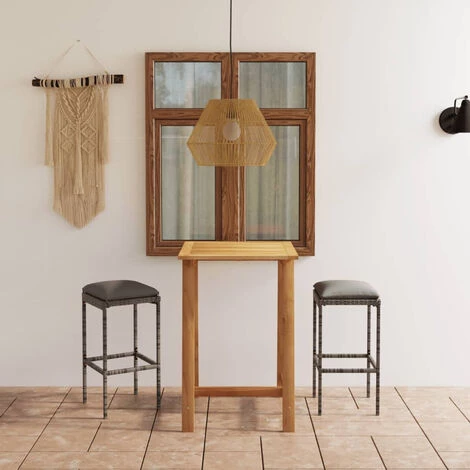 Cet ensemble de bar de jardin a un design élégant et sera le point de mire de votre jardin, patio ou terrasse. La table est fabriquée en bois d’acacia massif avec une finition à l’huile, ce qui la rend stable, durable et facile à entretenir. Doté d’un cadre en acier enduit de poudre recouvert de résine tressée résistante aux intempéries, ce tabouret de bar est robuste et facile à nettoyer. Les coussins de siège épais et amovibles sont très confortables. Les housses de coussin avec fermeture éclair peuvent être facilement enlevées et lavées. Remarque : Nous vous recommandons de couvrir l’ensemble pendant la pluie, la neige et le gel.