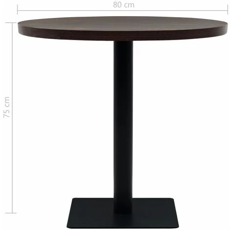 HAPPYSHOPPING Table De Bistro MDF Et Acier Rond 80 X 75 Cm Frene Fonce