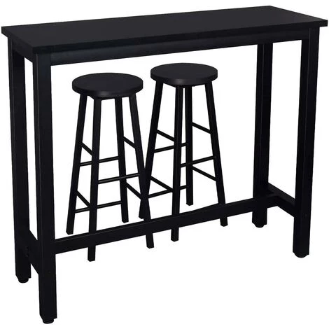 Présentation produit: 1x table de bar + 2 x ensemble de tabourets de bar structure en métal MDF noir