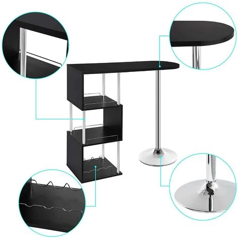 Présentation produit: Table de bar moderne avec trois espaces d’étagères MDF et métal noir