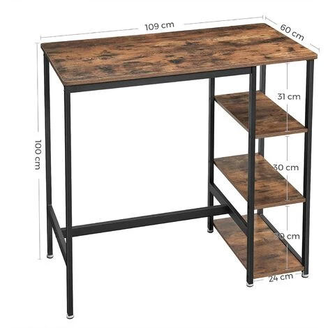Présentation produit: Table haute table de bar rectangulaire avec 3 étagères 109 cm marron et noir