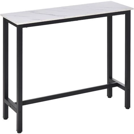 Cette magnifique table de bar design contemporain épuré avec châssis/piètement métal noir et plateau aspect marbre blanc s’intègrera parfaitement à l’espace intérieur de votre choix : cuisine, salon, etc…