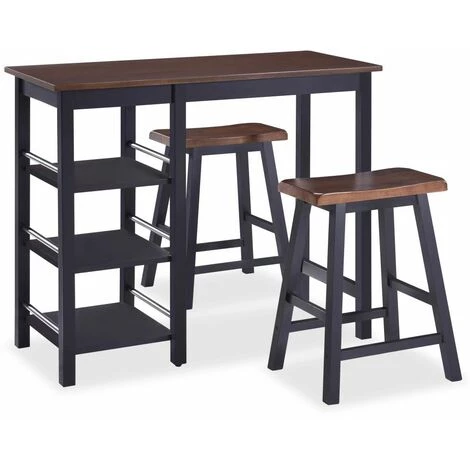 Ce mobilier de bar se compose d’une table et de deux tabourets et a un design classique qui en fera un excellent ajout à votre salle à manger ou salon. L’ensemble est fait de MDF et de bois d’hévéa robuste dans un agencement de couleurs sombres et sophistiquées qui ajoute à son apparence coloniale. La grande table de bar possède trois étagères sur un côté, sur lesquelles vous pouvez ranger des ustensiles de cuisine ou d’autres objets de tous les jours que vous aimeriez garder à portée de main, et les tabourets de bar ont des sièges généreux et ergonomiques.