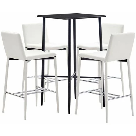 Avec un design moderne et contemporain, notre ensemble de bar est idéal pour les maisons, jardins, bars, pubs ou restaurants modernes. Son design épuré et contemporain complétera toute décoration intérieure. Le dessus de table est en MDF qui est facile à nettoyer. Le cadre en acier enduit de poudre ajoute à la stabilité et à la solidité de la table de bar. Les chaises de bar ont une assise ergonomique avec dossier intégré dans un look moderne et courbé. De plus, elles sont faciles à monter. Notre ensemble de bar est idéal pour savourer un verre de vin au bar, manger quelque chose au comptoir ou pour l’utiliser comme siège supplémentaire lorsque vous avez des invités. La livraison comprend une table de bar et 4 chaises de bar.