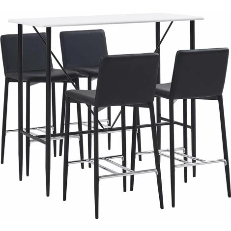 Avec un design moderne et contemporain, notre ensemble de bar est idéal pour les maisons, jardins, bars, pubs ou restaurants modernes. Son design épuré et contemporain complétera toute décoration intérieure. Le dessus de table est en MDF qui est facile à nettoyer. Le cadre en acier enduit de poudre ajoute à la stabilité et à la solidité de la table de bar. Les chaises de bar ont une assise ergonomique avec dossier intégré dans un look moderne et courbé. De plus, elles sont faciles à monter. Notre ensemble de bar est idéal pour savourer un verre de vin au bar, manger quelque chose au comptoir ou pour l’utiliser comme siège supplémentaire lorsque vous avez des invités. La livraison comprend une table de bar et 4 chaises de bar.