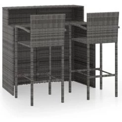 Cet ensemble de bar de jardin a un design élégant et sera le point de mire de votre jardin, patio ou terrasse. Fabriqué en résine tressée résistante aux intempéries et imperméable, cet ensemble de bar est facile à nettoyer, résistant à l’usure et adapté à une utilisation quotidienne. Le cadre en acier enduit de poudre rend la table et les tabourets très robustes et durables. Grace à la construction légère, tous les articles sont faciles à déplacer. Remarque: Afin de prolonger la durée de vie de vos meubles d’extérieur, nous vous recommandons de les nettoyer régulièrement et de ne pas les laisser à l’extérieur sans protection inutilement.Nettoyage: Utiliser une solution savonneuse douceStockage: Si possible, stockez dans un endroit frais et sec à l’intérieur. Si le produit est stocké à l’extérieur, protégez-le avec une housse imperméable. Essuyez et séchez l’excès d’eau ou de neige des surfaces planes après la pluie ou une chute de neige. Permettez une circulation d’air suffisante afin d’éviter les dommages liés à l’humidité.