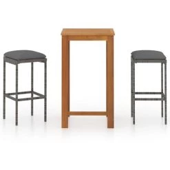 Cet ensemble de bar de jardin a un design élégant et sera le point de mire de votre jardin, patio ou terrasse. La table est fabriquée en bois d’acacia massif avec une finition à l’huile, ce qui la rend stable, durable et facile à entretenir. Doté d’un cadre en acier enduit de poudre recouvert de résine tressée résistante aux intempéries, ce tabouret de bar est robuste et facile à nettoyer. Les coussins de siège épais et amovibles sont très confortables. Les housses de coussin avec fermeture éclair peuvent être facilement enlevées et lavées. Remarque : Nous vous recommandons de couvrir l’ensemble pendant la pluie, la neige et le gel.
