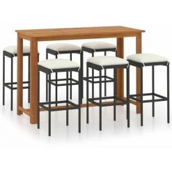 Cet ensemble de bar de jardin a un design élégant et sera le point de mire de votre jardin, patio ou terrasse. La table est fabriquée en bois d’acacia massif avec une finition à l’huile, ce qui la rend stable, durable et facile à entretenir. Doté d’un cadre en acier enduit de poudre recouvert de résine tressée résistante aux intempéries, ce tabouret de bar est robuste et facile à nettoyer. Les coussins de siège épais et amovibles sont très confortables. Les housses de coussin avec fermeture éclair peuvent être facilement enlevées et lavées. Remarque : Nous vous recommandons de couvrir l’ensemble pendant la pluie, la neige et le gel.