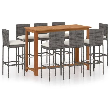 Cet ensemble de bar de jardin a un design élégant et sera le point de mire de votre jardin, patio ou terrasse. La table est fabriquée en bois d’acacia massif avec une finition à l’huile, ce qui la rend stable, durable et facile à entretenir. Doté d’un cadre en acier enduit de poudre recouvert de résine tressée résistante aux intempéries, ce tabouret de bar est robuste et facile à nettoyer. Les coussins de siège épais et amovibles sont très confortables. Les housses de coussin avec fermeture éclair peuvent être facilement enlevées et lavées. Remarque : Nous vous recommandons de couvrir l’ensemble pendant la pluie, la neige et le gel.