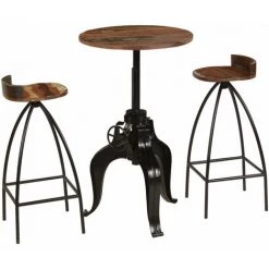 Cet ensemble de bar sera un excellent supplément à la décoration de votre cuisine ou salle à manger. L’ensemble est fait de bois massif recyclé et d’un cadre en acier robuste et est très stable et durable. Le bois récupéré provient des solives, des planchers et des poutres de soutien des vieux bâtiments en cours de démolition, et peut être composé de différents types de bois comme le pin, le teck, le hêtre, le chêne, le cèdre, le bois de manguier, l’acacia, etc. Cela signifie que le bois de récupération conserve les caractéristiques de ces différents types de bois. Le bois récupéré est déjà vieilli, patiné et séché, donc il ne rétrécit pas et ne se plie pas. La hauteur de la table est réglable pour une utilisation pratique. Les dossiers et les repose-pieds s’ajoutent au confort d’assise des chaises. Les cadres en acier contribuent à la stabilité de l’ensemble ainsi qu’à son style industriel. Chaque étape du processus de fabrication est réalisée avec le plus grand soin, que ce soit la recombinaison, le polissage, la peinture ou la laquage. L’assemblage est facile. La livraison comprend 1 table de bar et 2 chaises de bar. Remarque importante : La couleur et les grains de bois peuvent varier d’une pièce à l’autre, ce qui rend chaque pièce unique et légèrement différente de la suivante ; la livraison est aléatoire.