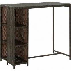La table de bar avec étagère de rangement est un choix parfait pour toute maison, jardin, bar, pub, restaurant, etc. Cette table de bistro est faite de résine tressée et cadre en acier, ce qui la rend durable et stable. Le support de rangement latéral comprend 3 étagères et offre un espace de rangement supplémentaire pour vos articles à portée de main. Grâce à sa construction légère, la table de salle à manger est également facile à déplacer.