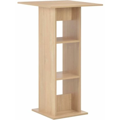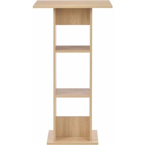 Cette table de bar apportera une touche pratique et attrayante à votre intérieur. Elle pourra également être utilisée comme table de salle à manger. Le design élégant de la table haute en fait un accessoire intemporel pour votre espace de vie. Grâce à la construction en aggloméré, la table de pub est très durable, stable et facile à nettoyer. De plus, il y a des petites étagères sous le dessus de table pour ranger des petits objets. La table de bar est facile à assembler.