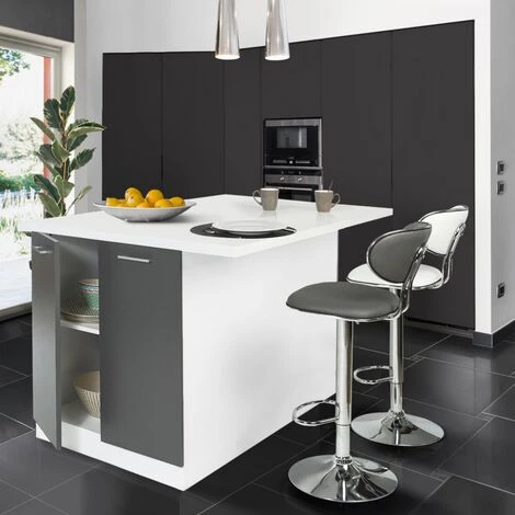 IDMARKET Ilot Central IVO 120 Cm Blanc Et Gris Avec Plan De Travail – Gris