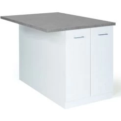 IDMARKET Ilot Central IVO 120 Cm Blanc Avec Plan De Travail Gris Anthracite – Gris
