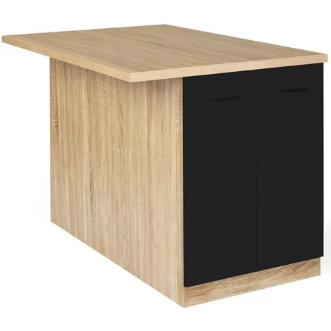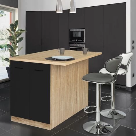 IDMARKET Ilot Central IVO 120 Cm Bois Façon Hêtre Portes Noires Avec Plan De Travail