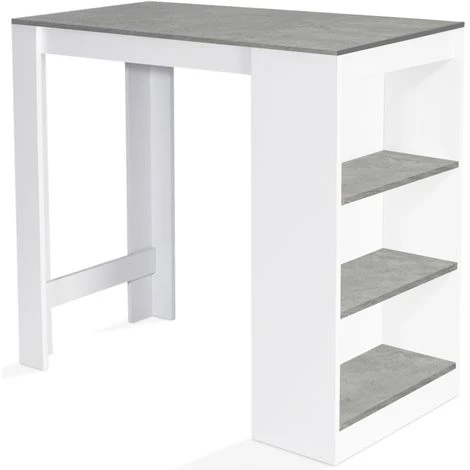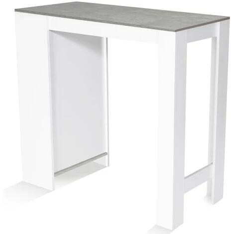 Description de la table de bar BARTH bois blanc plateau effet bétonL’espace de votre intérieur, de votre cuisine sera optimisé avec notre table de bar BARTH pour 2 à 4 personnes en bois coloris blanc et façon béton !Son design moderne, ses lignes épurées et ses finitions mates lui permettent de s’adapter idéalement à tout type d’intérieur !Cette jolie table de bar peut accueillir jusqu’à 4 personnes.Sa structure en PB (panneaux de particules de bois épaisseur 1,5 cm) lui apporte une vraie stabilité et une véritable robustesse.Pratique et fonctionnelle, elle constitue une véritable solution de rangement pour les petits espaces car elle dispose de 3 compartiments latéraux !Vous bénéficiez ainsi de nombreuses capacités de rangement pour vos ustensiles, couverts, vaisselle, bouteilles et condiments ! De plus, vous les conservez à portée de main et vous optimisez l’espace ! Dimensions de la table de bar BARTH 2 à 4 personnesDimensions totales : Longueur 110 cm x largeur 50 cm x Hauteur 103 cmDimensions des pieds : Longueur 10 cm x largeur 10 cm x 101,5 cmHauteur du 1er compartiment de rangement sur le côté : 26,5 cmHauteur du 2ème compartiment de rangement sur le côté : 26,5 cmHauteur du 3ème compartiment de rangement sur le côté : 28 cmLargeur des compartiments de rangement sur le côté : 46,5 cmProfondeur des compartiments de rangement sur le côté : 23 cmModèle disponible en différents coloris sur notre boutique en ligne :- Table de bar BARTH 2 à 4 personnes bois blanc plateau blanc- Table de bar BARTH 2 à 4 personnes bois blanc plateau gris- Table de bar BARTH 2 à 4 personnes bois blanc plateau façon hêtre- Table de bar BARTH 2 à 4 personnes bois noir plateau façon hêtre- Table de bar BARTH 2 à 4 personnes ajourée bois blanc plateau gris- Table de bar BARTH 2 à 4 personnes ajourée bois blanc plateau façon hêtre