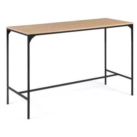 Descriptif de la table haute de bar DETROIT et 6 tabourets bois et métalVous aimez partager vos repas en famille ou entre amis, le tout dans un esprit décontracté ? N’hésitez plus et profitez de la table haute DETROIT et ses 6 tabourets pour accueillir vos convives. Ce meuble bar de cuisine est très tendance et son esprit loft s’accorde parfaitement à son utilité : mangez rapidement autour de cette table mange-debout ou prenez le temps d’un dîner pour vous installer confortablement sur les tabourets. Modernité et design sont les maîtres-mots de cette table haute DETROIT au plateau en particules de bois et à la structure en métal noir. Stables et robustes, la table et ses 6 tabourets seront un élément central de votre cuisine ou salle à manger. Utilisez-les comme table de cuisine dans l’esprit d’un îlot central accompagné de 6 tabourets ou disposez-les dans votre pièce à vivre. Glissez les tabourets sous la table pour économiser encore plus d’espace ! La couleur bois du plateau et de l’assise des tabourets ainsi que le noir de la structure se fondront parfaitement dans votre décoration en apportant une touche industrielle très tendance.Cette table et ses 6 tabourets sont idéaux si vous recherchez une table de bar à la fois design et fonctionnelle.Profitez de ce meuble bar de cuisine pour 6 personnes à un prix irrésistible !Dimensions de la table haute DETROIT et 6 tabourets bois et métalDimensions globales de la table de bar : Longueur 150 cm x largeur 60 cm x Hauteur 95 cmDimensions globales des tabourets : Longueur 32 cm x largeur 32 cm x Hauteur 67 cmHauteur du repose-pied : 15,5 cmDimensions des tubes (table et tabourets) : 2 x 2 cmÉpaisseur du plateau et des assises : 1,5 cmCapacité : 6 personnesModèle également disponible en version 4 tabourets et 2 tabouretsRetrouvez l’ensemble de notre collection industrielle sur notre boutique en ligne ! – HORS CORSE -article non livrable en Corse