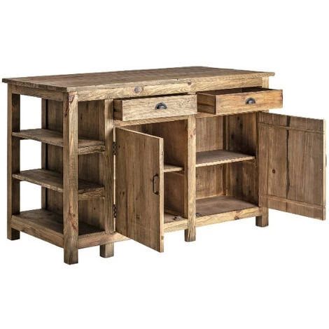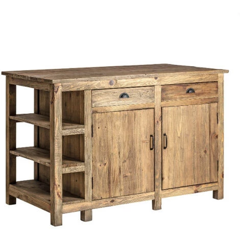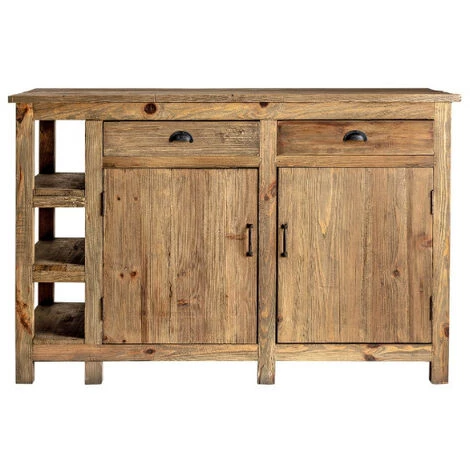 LES TENDANCES Comptoir De Bar 2 Portes 2 Tiroirs Pin Massif Recyclé Clair Lo