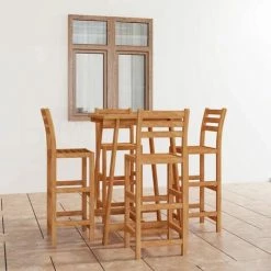 LITZEE Ensemble De Bar D’extérieur 5 Pcs Bois D’acacia Massif #