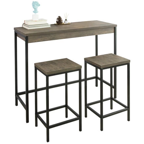 SoBuy OGT30-N Lot Table et Tabourets de Bar de Style Industriel Ensemble Table de Bar + 2 Tabourets Jeu de Bar Table Haute Chaise Haute Ensemble de bar composé d’une table haute et de 2 tabourets. Idéal pour le balcon, le bistrot, le bureau, dans la salle à manger ou la cuisine. Elles sont parfaites pour tous vos dîners romantiques ou les dîners festifs avec toute la famille. La bonne fabrication et la stabilité allie la qualité et l’élégance de cette table et les tabourets. Les quatre pieds et le piètement carré en métal robustes vous garantissent une belle stabilité. L’assise ergonomique permet de passer un bon moment. Ces tabourets ont une hauteur fixe et leurs sièges ne peut pas être pivoter. Détails : Matériau : plateau en MDF Finition coloris PVC, structure en métal époxy. Dimensions de table : L121cm x P46cm x H97cm. Dimensions de tabouret : L38cm x P32cm x H66cm. Hauteur d’assise : 66cm. Poids de l’envoi: 29kg. Capacité Max : Table : 75kg. Chaise : 150kg. À monter soi-même facilement. Livraison : 1 table, 2 tabourets et Notice de montage détaillée. Cet article est livré sans éléments décoratifs des photos. Avec la Facture.