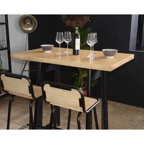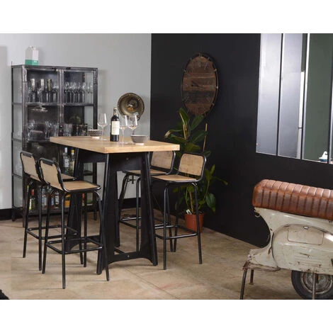 IDMARKET Table De Bar îlot DETROIT Et 2 Tabourets Design Industriel