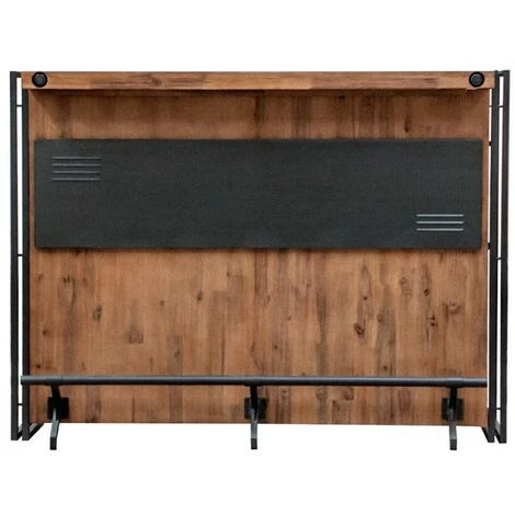 - ses écrous métalliques, petits trous, veinures et nœuds du bois pour un design industriel.