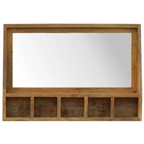 Ce miroir monté classique propose des options de stockage avec 5 emplacements ouverts. C’est une pièce polyvalente car elle comprend 5 mini compartiments pour stocker n’importe quel petit essentiel et un grand miroir qui peut être utilisé pour jeter un coup d’œil avant de sortir. Il a été construit à partir de bois de mangue 100% solide dans une finition en chêne naturel, qui est l’ajout idéal à une maison de style pays traditionnel et est une pièce pratique qui a été faite pour résister à des années d’utilisation.Structure en bois massifBois de mangueFabriqué à la mainChêneEntièrement assembléEmballage sécurisé