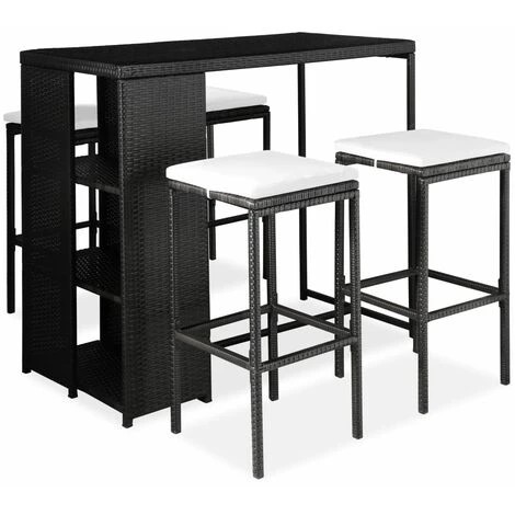 Cet ensemble de bar de jardin a un design élégant et sera le point de mire de votre jardin, patio ou terrasse. Fabriqué en résine tressée résistante aux intempéries et imperméable, cet ensemble de bar est facile à nettoyer, résistant à l’usure et adapté à une utilisation quotidienne. Le cadre en acier enduit de poudre rend la table et les tabourets très robustes et durables. Grace à la construction légère, tous les articles sont faciles à déplacer. Les coussins de siège amovibles et épais sont très confortables. Les housses des coussins avec fermetures éclair peuvent être facilement enlevées et lavées. Remarque : Nous vous recommandons de couvrir l’ensemble pendant la pluie, la neige et le gel.
