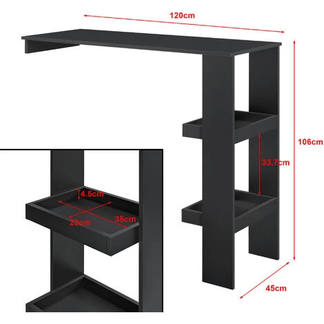Cette table de bar se fait remarquer non seulement par sa construction originale mais grâce à son design moderne. Elle sera un accessoire fonctionnel et esthétique de votre maison. D’un côté, cette table de bar doit être montée contre le mur. De l’autre côté, vous pourrez profiter des espaces de stockage pratiques.